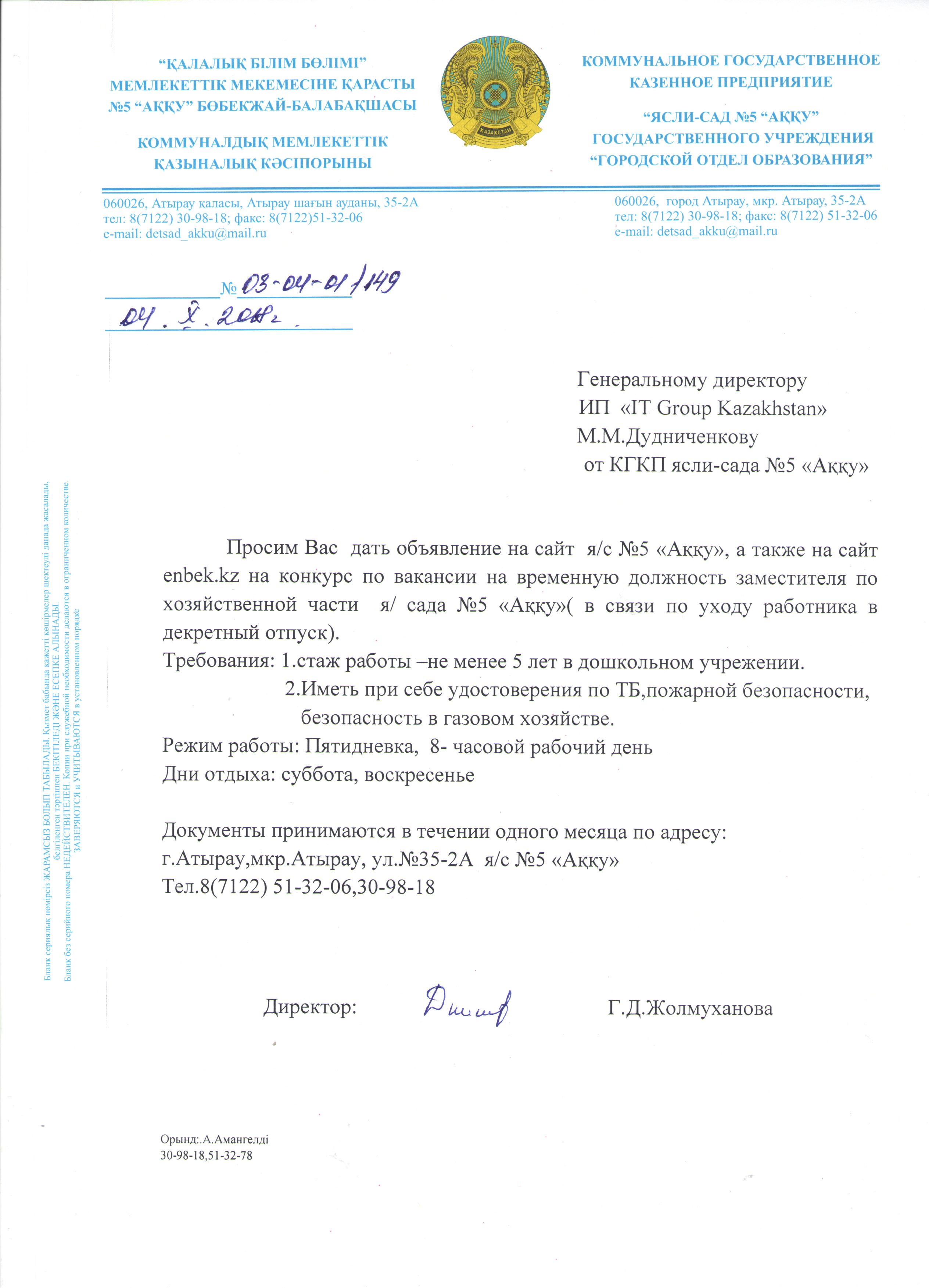 КГКП ясли-сад №5 "Аққу" отдела образования города Атырау управления образования Атырауской области